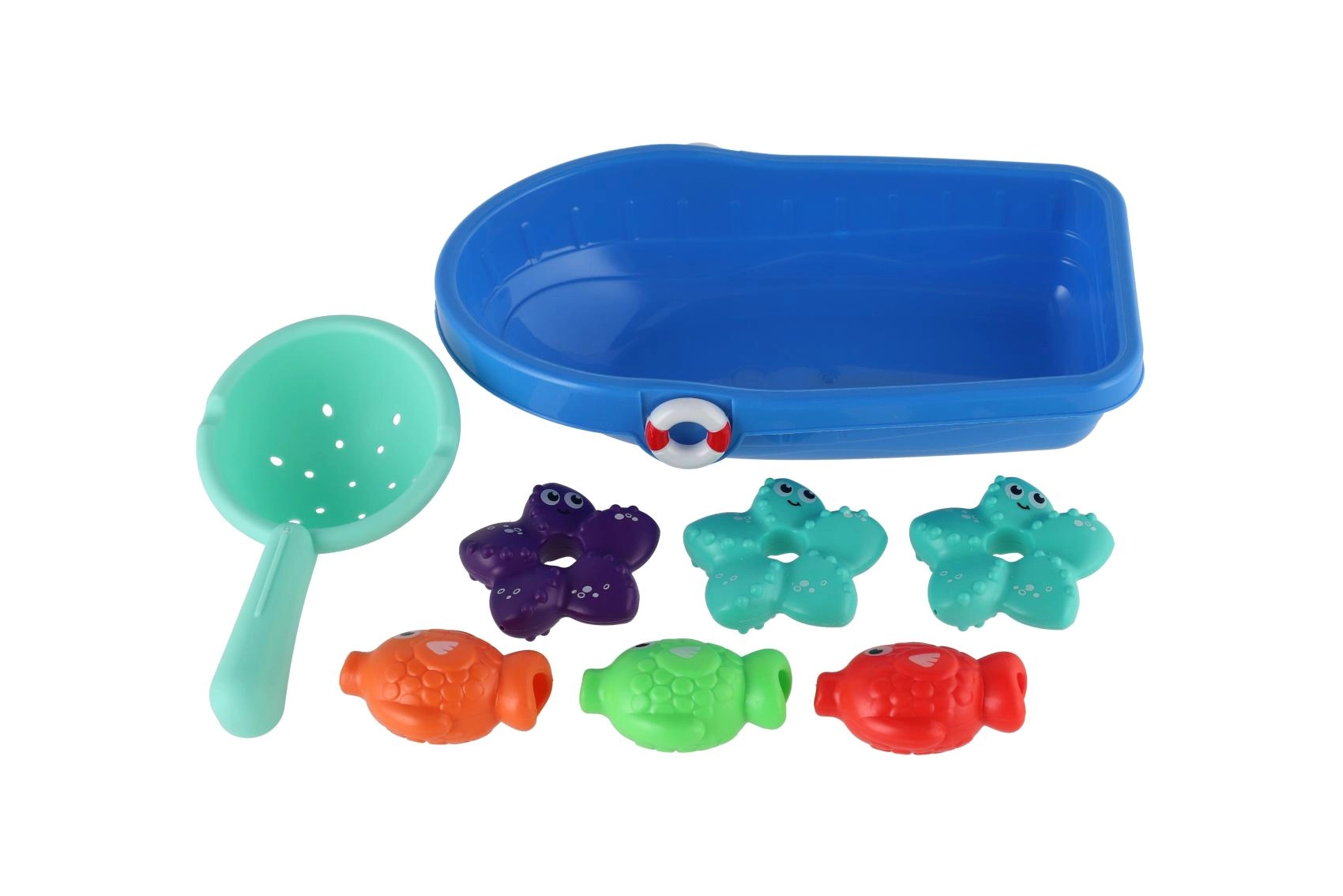 Kunststoffboot, Sieb mit Öffnungen, Meerestiere (mehrere Stück)