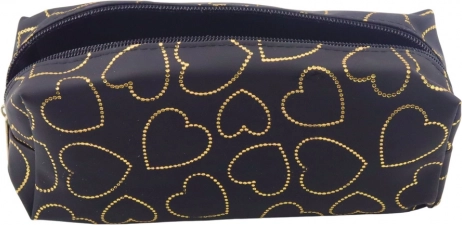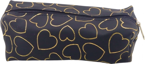 Stilvolles schwarzes Federmäppchen mit goldenen Herzen, das Eleganz und Funktionalität bietet. Ideal für Schule und Büro. Größe: 20 x 8 x 6 cm.