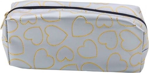 Stilvolles und funktionales Mäppchen in elegantem Silber mit goldenen Herzen-Muster, ideal für Studenten und alle, die praktische und modische Accessoires schätzen.