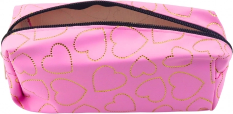 Dieses Etui in elegantem Rosa, verziert mit einem feinen Muster aus goldenen Herzen, eignet sich sowohl für die Schule als auch für das Büro. Dank der kompakten Maße von 20 x 8 x 6 cm passt es leicht in Rucksack oder Handtasche. Es bietet Platz für alle notwendigen Schreibwaren durch das geräumige Hauptfach, das durch einen sicheren Reißverschluss geschützt wird.