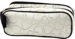 Dieses weiße Mäppchen mit goldenen Herzen bietet hervorragende Organisation dank zwei separater Abteile zum Verstauen Ihrer Schreibutensilien. Es bietet Platz nicht nur für Stifte und Bleistifte, sondern auch für Lineale, Radiergummis und Textmarker. Separate Kammern sorgen für bessere Übersichtlichkeit und Ordnung.