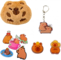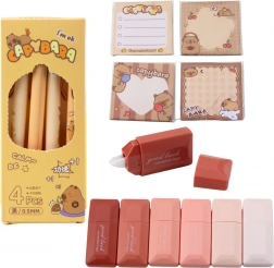 Das Set enthält eine reichhaltige Sammlung von Zubehör im Capybara-Design, darunter: 4 Stifte mit schwarzer Tinte, 6 Mäuseradiergummis, 4 Sätze dekorative Haftnotizen, ein Plüsch-Capybara mit Brosche, ein Schlüsselanhänger mit Capybara, 2 Capybara-Clips und 5 lustige Aufkleber. Dieses Produkt ist das perfekte Geschenk für Schüler, Tierliebhaber oder jeden, der einzigartige Lernzubehör liebt.
