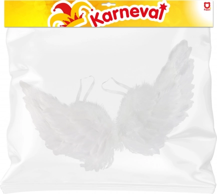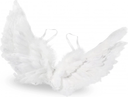Elegante Engelsflügel mit weißen Federn, ideal für Kostüme. Großartig für Nikolaus und Karnevals. Bequeme elastische Träger.