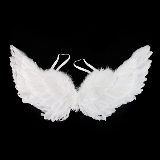 Leichte und elegante Engelsflügel bedeckt mit weißen Federn, ideal für ein Engelskostüm. Eine großartige Wahl für Nikolaus, Weihnachtsfeiern, Fotoshootings oder Karnevals. Elastische Träger sorgen für einen bequemen Sitz.