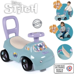 Stabiles Rutschauto in Form eines Autos mit Stitch-Motiven, das als 2 in 1-Rutschauto und Lauflernhilfe fungiert. Eine großartige Wahl für kleine Reisende.