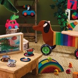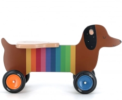 Erleben Sie Abenteuer mit dem hölzernen Laufrad Bunter Hund, entworfen vom Illustrator Andy Westface. Dieses originelle und bunte Laufrad bietet sichere und spaßige Fahrten für Kinder ab 18 Monaten.