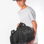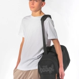 Praktische und geräumige Lösung: Die Tasche bietet ein geräumiges Hauptfach mit breitem Deckel und Seitentaschen, einschließlich einer verlängerten Tasche für Schuhe.