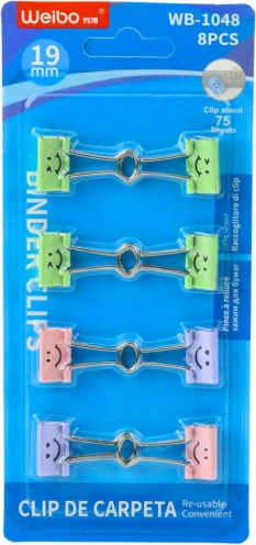 Set bunter Büroklammern mit Lächeln ist ein ideales Accessoire zur Organisation von Dokumenten in der Schule, im Büro oder zu Hause. Dieses Set enthält 8 Metallklammern mit einer Breite von 19 mm, die problemlos bis zu 75 Blatt Papier zusammenhalten und Ihrem Arbeitsalltag ein Lächeln hinzufügen.