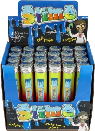 Schmieriger und bunter Schleim in einer transparenten Röhre ist ideal für Kinder jeden Alters. Dieses spielerische Material begeistert mit seinen Eigenschaften und fördert die Kreativität.