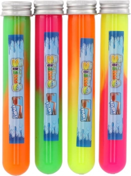 Entdecken Sie die Welt der Farben und Texturen mit Schleim in einer transparenten Röhre. Dieses spaßige Material ist: