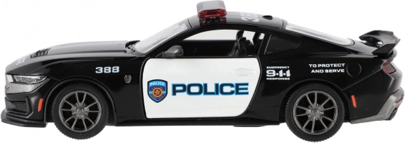 Genießen Sie Action in Polizeifarben mit dem präzise gestalteten Modell FORD MUSTANG DARK HORSE 2024. Dieser Metall-Sportwagen im Maßstab 1:38 ist dank authentischer Karosseriedetails und funktionaler Elemente ideal zum Spielen oder Ausstellen in der Sammlung.