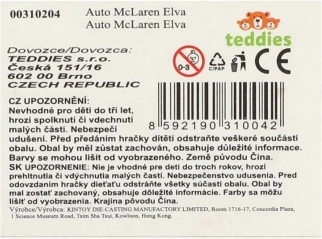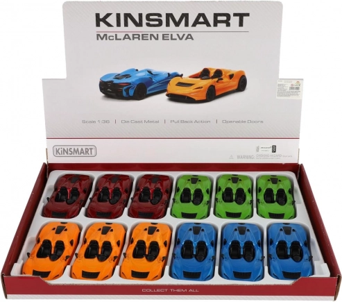 Metallmodell McLaren Elva Kinsmart 13 cm, Rückzugsmotor, öffnende Türen, geeignet für Kinder ab 3 Jahren.