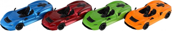 Entdecken Sie den luxuriösen Stil und die extreme Leistung des McLaren Elva Modellautos der Marke Kinsmart. Ein perfektes Spielzeug und Sammlerstück mit Rückzugsmotor und zu öffnenden Türen.