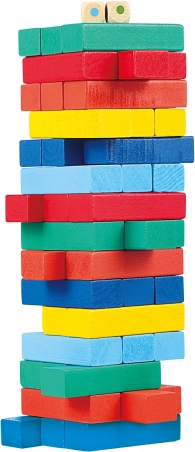 Genießen Sie Spaß und Kreativität mit diesem bunten Holzturm aus 54 Teilen, die die motorischen Fähigkeiten der Kinder fördern.