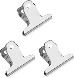 Wir präsentieren Ihnen einen Satz von drei massiven Klammern aus verzinktem Metall, das eine hohe Druckbeständigkeit bietet. Diese Klammern haben glatte Kanten, einen federnden Mechanismus und eine Öffnung zum Aufhängen, was sie zu einem praktischen Werkzeug für den täglichen Gebrauch macht.