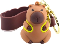 Anhänger Kapybara mit gelbem Rucksack ist das ideale Accessoire für Liebhaber von niedlichen und originellen Gegenständen. Die Kapybara-Figur mit Rucksack ist aus weichem, angenehm anzufassendem Silikon gefertigt und mit einem robusten Karabinerhaken sowie einem klassischen Ring für eine einfache Befestigung ausgestattet.