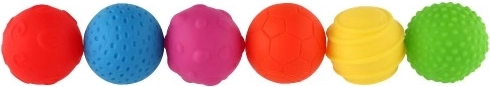 Jeder der 6 Bälle hat eine einzigartige Oberfläche, die den Tastsinn fördert und neugieriges Entdecken der Welt durch Berührung unterstützt.