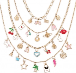 Mit diesem Set können Sie völlig einzigartige Halsketten erstellen, die Ihren Stil hervorheben. Wählen Sie eine Kette und ordnen Sie die Anhänger nach Ihren eigenen Vorstellungen an. Das Set enthält alles, was Sie brauchen, damit Ihr Werk genau so ist, wie Sie es wünschen, einschließlich einer praktischen Unterlage zur Anordnung der Anhänger.