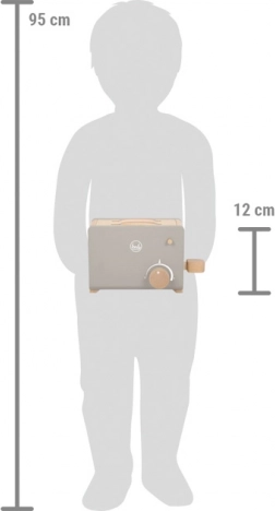 Dieser kleine Holztoster ist die ideale Ergänzung für jede Kinderküche. Er bietet Ihren Kindern stundenlangen Spaß beim Kochspielen. Einfach Brotscheiben einlegen, den Griff drehen und die Toasts sind servierbereit.
