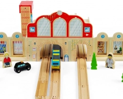 Erwecken Sie Ihre Eisenbahnwelt mit dem wunderschönen, hellfarbigen Bahnhof Bigjigs Rail zum Leben. Verfügt über beidseitige Bahnsteige mit Treppen und einem funktionalen Aufzug bis zur Kasse. Im Set enthalten sind zwei Passagiere, die den Spaß und die Fantasie der Kinder steigern.