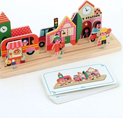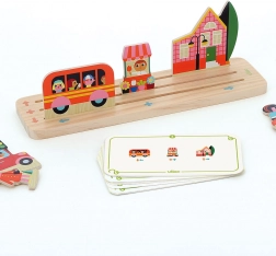Dieses Holz-Logikpuzzle mit wunderschönen Illustrationen von Ingela P. Arrhenius fördert spielerisch die Fähigkeiten der Kinder. Mit Hilfe von Holzstücken und Spielkarten lernen die Kinder, die Beziehungen zwischen Objekten wie links, rechts, oben, unten und in der Mitte wahrzunehmen und korrekt zu platzieren.