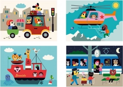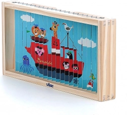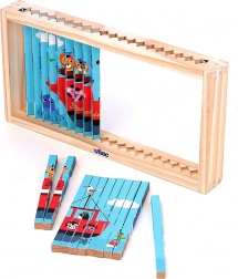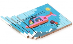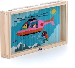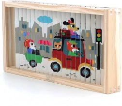 Entdecken Sie die Welt aus verschiedenen Blickwinkeln mit diesem vierdimensionalen Holzpuzzle. Dank des Designs von Ingela P. Arrhenius erwarten Sie vier verschiedene Illustrationen: Auto, Schiff, Hubschrauber und Zug. Durch das Einfügen der Holzstäbchen in den Ständer erkundet das Kind nicht nur versteckte Bilder, sondern entwickelt auch logisches Denken und Beobachtungsfähigkeiten.