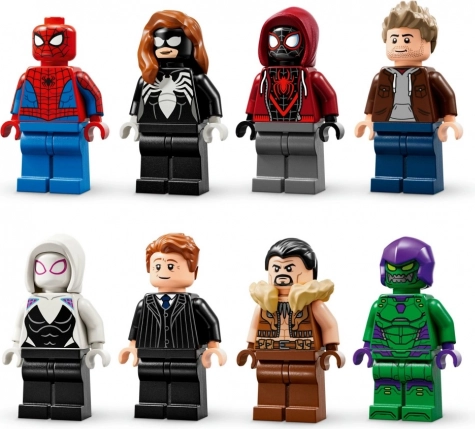 Spider-Man, Spider-Woman, Miles Morales mit Motorrad, Eddie Brock, Ghost-Spider, Norman Osborn, Kraven der Jäger und der Grüne Kobold mit Gleiter – alles für epische Duelle zwischen Gut und Böse.