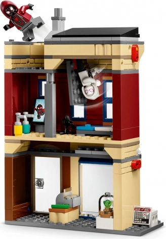 Drei separate Gebäude – Miles’ Apartment über dem Juwelier, der Oscorp-Turm und Venoms Apartment über dem Lebensmittelgeschäft – erschaffen eine lebendige Stadtumgebung für actionreiche Abenteuer und zum Ausstellen.