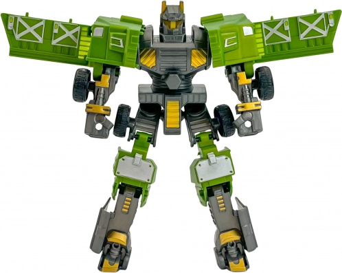 Verwandeln Sie die Action-Figur in nur wenigen Schritten in ein robustes grünes Kampffahrzeug. Sichtbare Räder und Paneele zeigen, wo umzuklappen ist – das schaffen auch Kinder mühelos.