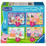 Vier verschiedene Puzzles mit Peppa Wutz-Motiv.