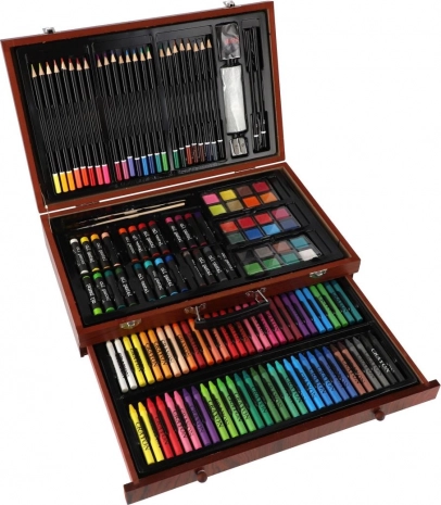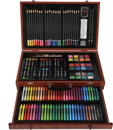 Universelles Kreativset für kleine und große Künstler mit insgesamt 143 Teilen zum Malen, Zeichnen und Gestalten. Alles ist übersichtlich in einem eleganten Holzkoffer mit Verschluss untergebracht, Maße 38 × 25 × 8 cm. Ideal für kreatives Arbeiten zu Hause, Schulprojekte und Reisen. Geeignet für Kinder ab 14 Jahren.