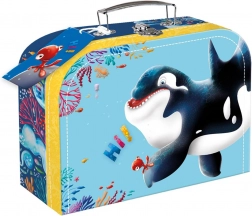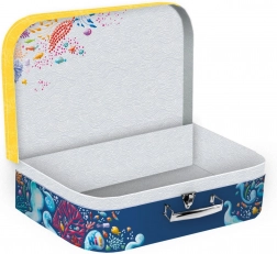 Erleben Sie die Freude an der Nutzung eines stilvollen Papier-Schulkoffers mit praktischen Funktionen wie einem Metallgriff und einem Schloss.
