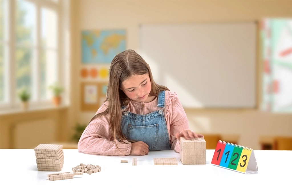 Das grundlegende Dienes-Set für den Mathematikunterricht hilft Kindern, die Prinzipien des Dezimalsystems besser zu verstehen, indem sie mit Würfeln verschiedener Werte manipulieren. Hergestellt aus dem umweltfreundlichen Material RE-Wood® und ideal für den individuellen oder Gruppenunterricht.