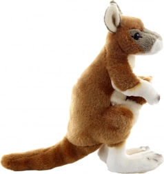 Dieses weiche Plüsch-Känguru mit niedlichem Jungtier in der Tasche schenkt Kindern viel Spaß und Geborgenheit. Realistische Details, der lange Schwanz und große Ohren fördern die Fantasie und unterstützen kreatives Spiel und Rollenspiel. Dank der kompakten Maße liegt es perfekt in kleinen Kinderhänden und lässt sich leicht mitnehmen.