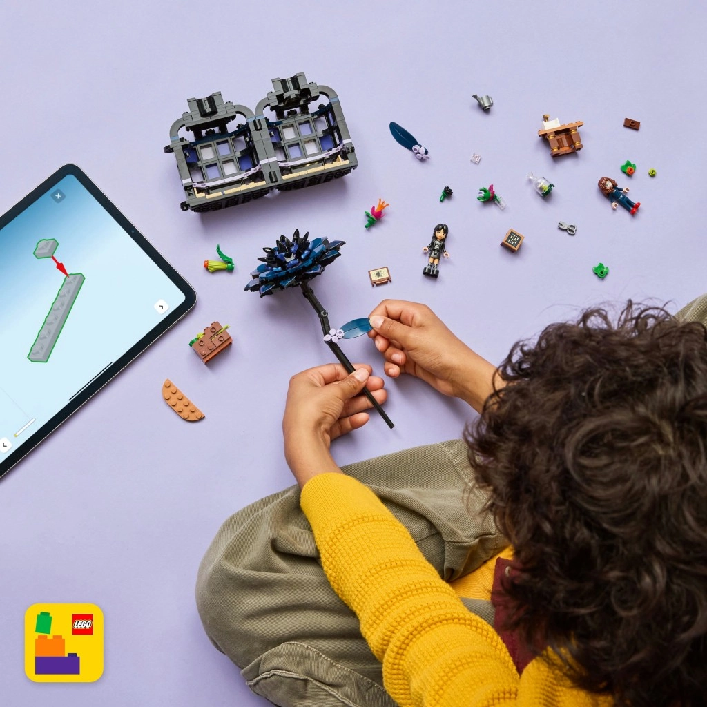 Zwei Minipuppen – Wednesday Addams und Professorin Marilyn Thornhill – fördern die Fantasie und sorgen für eine spannende Atmosphäre. Dank durchdachter Details, beweglicher Elemente und vielfältiger Gestaltungsmöglichkeiten ist das Set perfekt zum Ausstellen und Spielen. Mit der App LEGO Builder können ältere Kinder das Modell leicht aufbauen, in 3D drehen und den Fortschritt verfolgen.