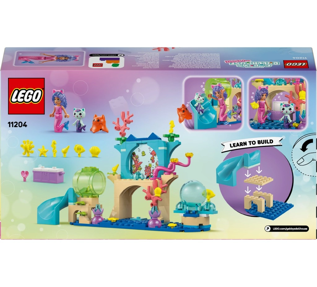 Entdecken Sie ein farbenfrohes Unterwasserabenteuer mit Gabi, Meer-Kätzchen und Qualle in einem unterhaltsamen LEGO Set für Kinder ab 4 Jahren. Es warten eine Rutsche, eine riesige Blase zum „Schwimmen“, ein bewegliches Korallenriff mit versteckter Schatztruhe und viele Meeresbewohner, Muscheln und Pflanzen. Ideal für kleine Baumeister dank Starterstein und einfachen, bebilderten Anleitungen.