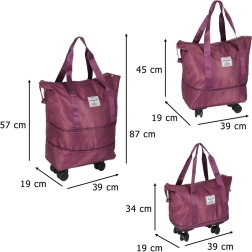 Diese faltbare Reisetasche ist ideal für Vielflieger, die ein praktisches und anpassbares Gepäckstück benötigen. Mit abnehmbaren Rädern und einem Kammererweiterungssystem können Sie sie leicht von einer kompakten Tasche in eine mittlere Wochenendtasche oder eine große Reisetasche auf Rädern verwandeln.