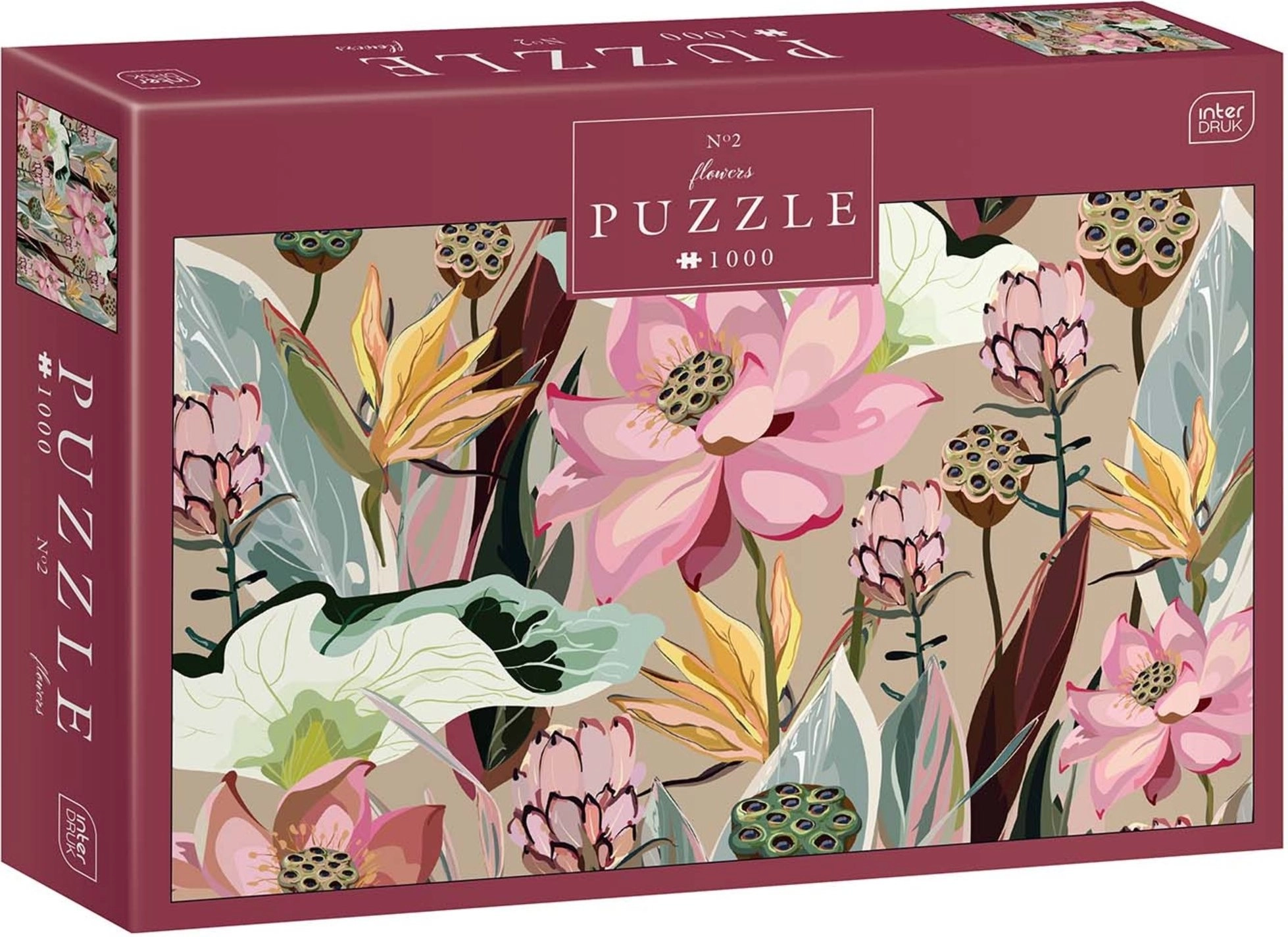 Entdecken Sie den Zauber der Blumen mit diesen wunderschönen Puzzles, die Motive von Lotus und Protea in 1000 Teilen enthalten.