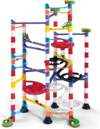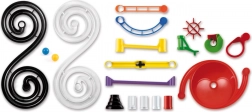 Bunte Kugelbahn für Kinder ab 6 Jahren, die ihre Kreativität und Vorstellungskraft fördert. Durch den Zusammenbau der Teile können Kinder abwechslungsreiche Strecken mit Brücken, Spiralen und weiteren Hindernissen schaffen, die beim Beobachten Spaß machen.