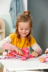 Ein Set bunter, leicht anklippbarer Deko-Elemente ermöglicht es Kindern, das Design des Tragegurts je nach Stimmung zu verändern. Inklusive Box zur Aufbewahrung.