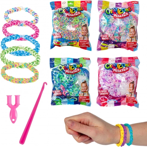 Kreiere deinen eigenen originellen Schmuck mit diesem Mega-Set, das bis zu 5000 bunte Gummibänder, Werkzeuge zum Flechten und Verschlüsse enthält. Ideal zur Förderung der kindlichen Kreativität und Feinmotorik.