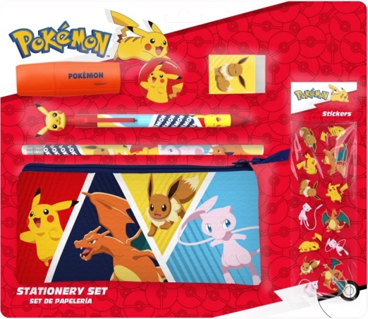 Offiziell lizenziertes Schreibwarenset Pokémon mit Aufklebern. Enthält alles, was Sie für ein Schulabenteuer brauchen.