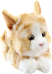 Wählen Sie diese wunderschöne liegende Plüschkatze, die sich durch natürliche Farben und realistisches Aussehen auszeichnet. Perfekt für Kinder jeden Alters, einschließlich Neugeborener. Dank ihrer Größe von 20 cm passt sie leicht in die Arme, in die Wiege oder als Dekoration auf ein Regal.