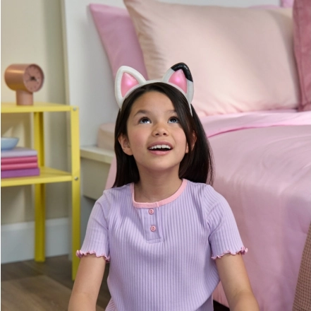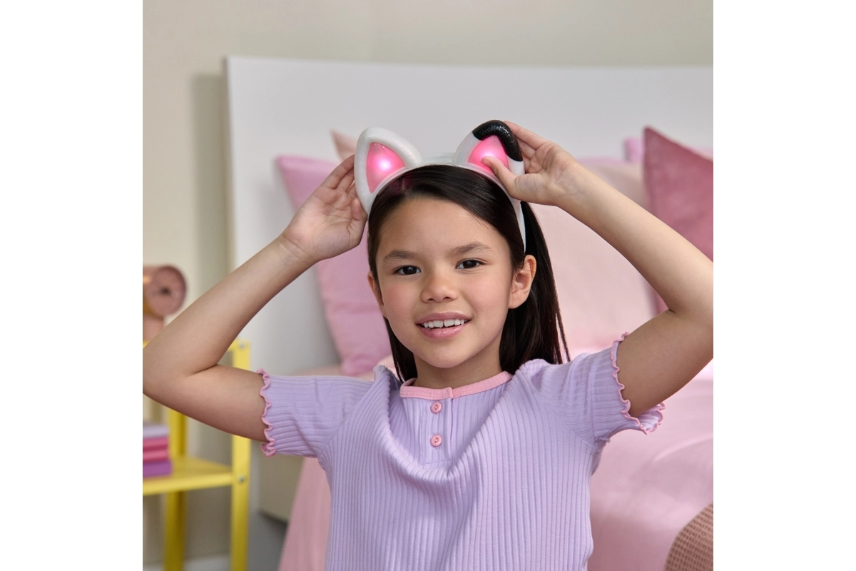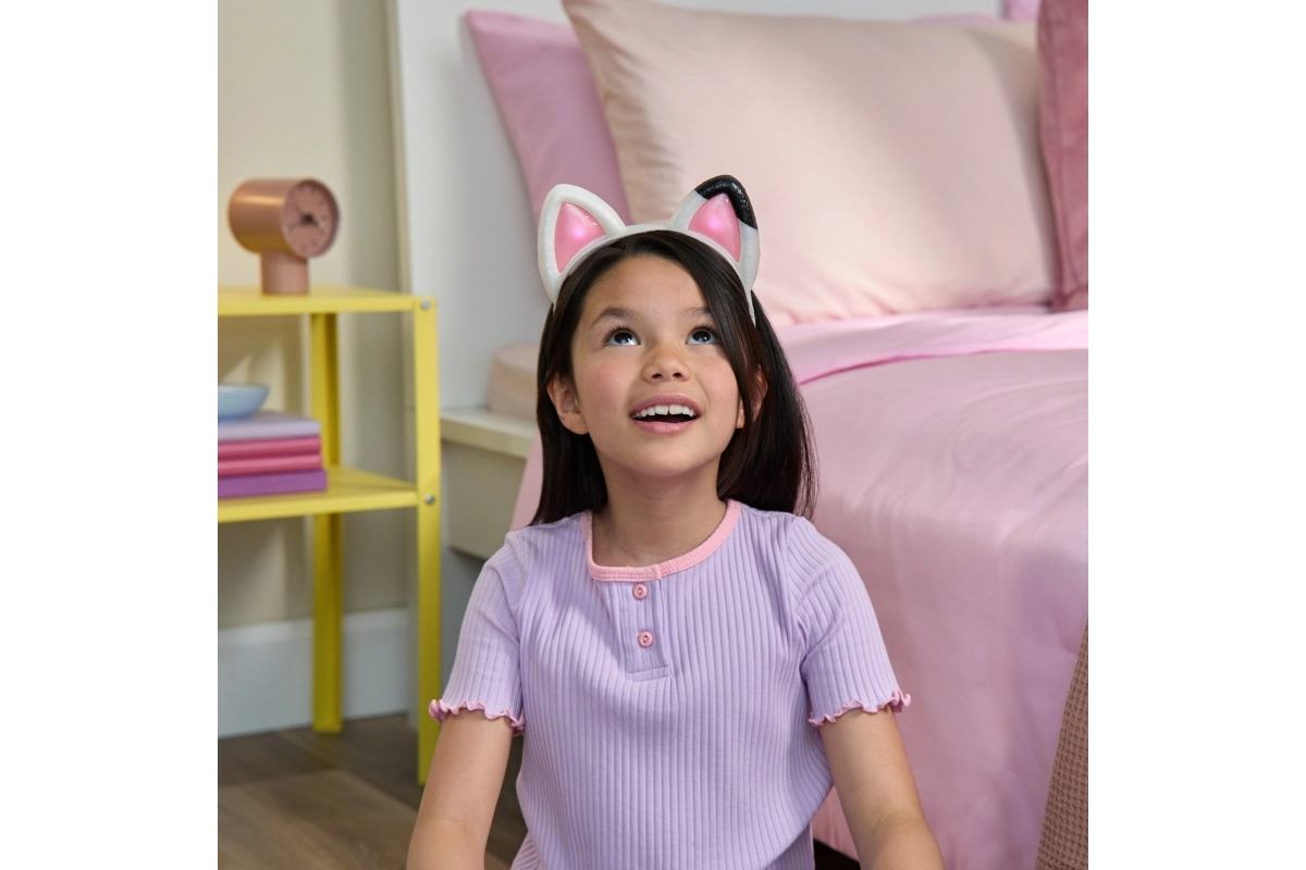 Bringe jedes Verkleiden und Rollenspiel zum Leuchten mit dem vom Serienhit Gabbys magisches Haus inspirierten interaktiven Haarreif. Die realistischen Katzenohren mit rosa Innerem und typischem schwarzen Abschluss erwachen durch Lichter, Geräusche und Bewegungsaktivierung zum Leben – so tauchen Kinder sofort in Gabbys magische Welt ein.