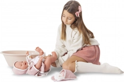 Die Puppe kommt mit einer nachfüllbaren Flasche, zwei Einwegwindeln und einer Badewanne für mehr Spielspaß. Verpackt in einer Geschenkbox und empfohlen für Kinder ab 3 Jahren.