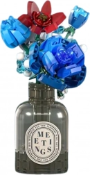 Dieses Konstruktionsset bringt eine Kombination aus farbiger Eleganz und spaßiger Kreation. Das Modell in den kühlen Tönen von Blau und Rot zieht die Aufmerksamkeit mit seiner präzisen Verarbeitung, den Farbkontrasten und der ästhetischen Form auf sich. Die Blumen in dieser Komposition umfassen blaue Rosen, rote Tulpen und kleine Details, die Gänseblümchen oder Beeren nachahmen.