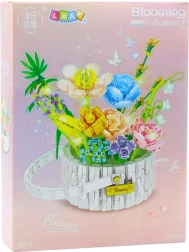 Das Set enthält Rosen, Tulpen, Maiglöckchen und weitere Blumen, die dem Modell ein realistisches Aussehen verleihen. Die Blumen sind in einem eleganten geflochtenen Korb mit Henkel platziert, was das erstellte Modell zu einer interessanten Innenraumdekoration macht.