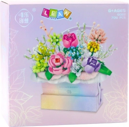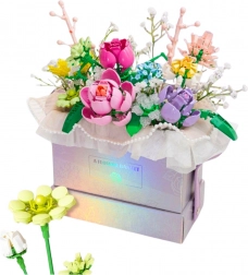 Der Blumenstrauß enthält verschiedene Blumensorten wie Rosen, Tulpen und Gänseblümchen, ergänzt durch feine floristische Elemente. Dieses Erlebnis wird zusätzlich durch die LED-Beleuchtung bereichert, die der Komposition abends eine märchenhafte Erscheinung verleiht. Angetrieben durch LR44-Batterien, die Teil des Sets sind.