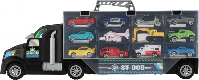 Der Transport-LKW ist so konzipiert, dass er die kindliche Vorstellungskraft unterhält und fördert. Er ist mit Front- und Heckrampen ausgestattet, um das einfache Ein- und Ausfahren der kleinen Autos zu erleichtern.