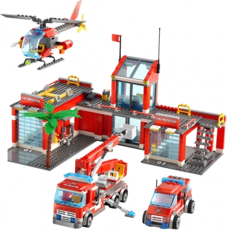 Bausatz Feuerwache mit Fahrzeugen 808 Teile